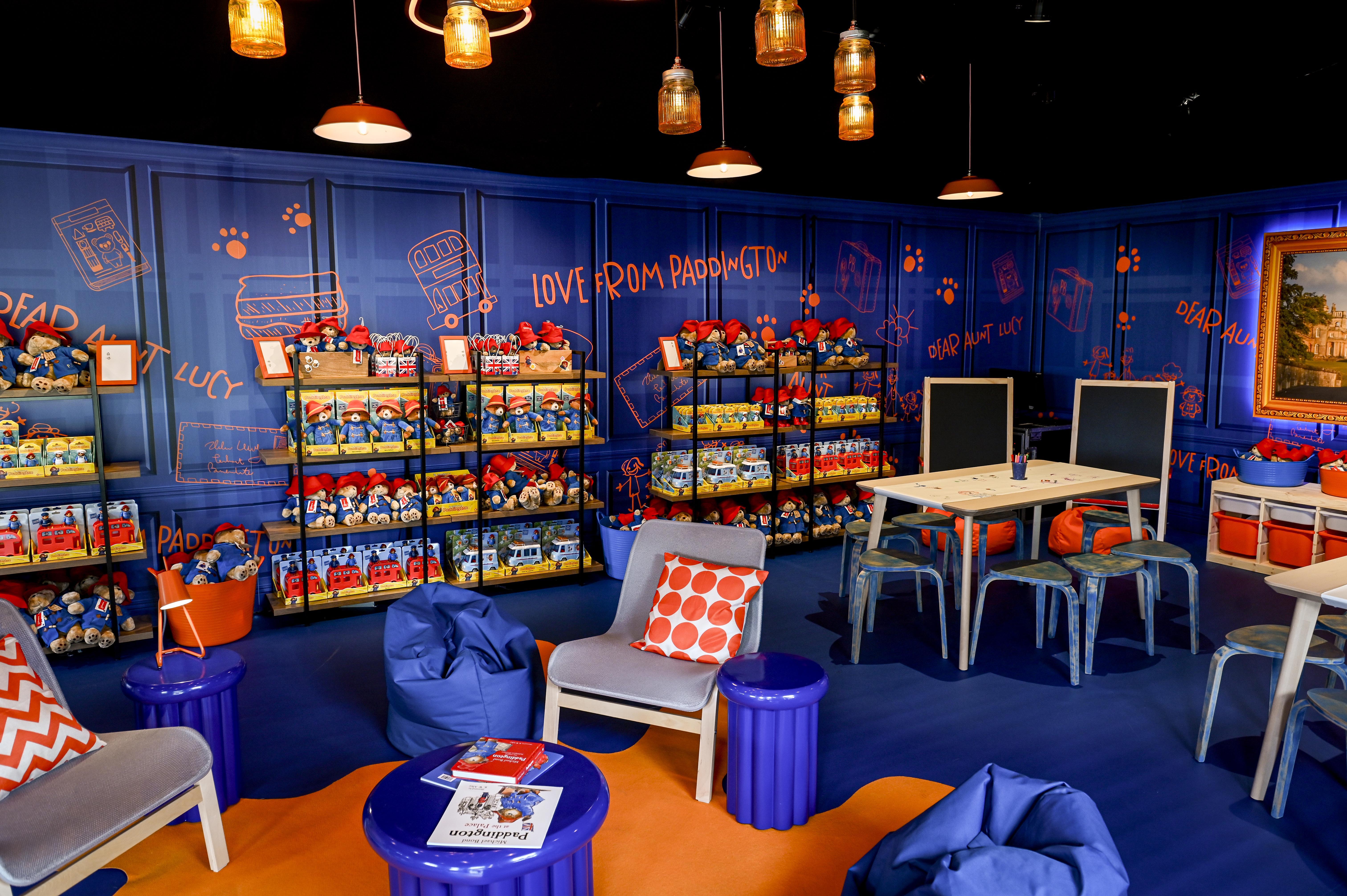 Custom jar-shaped pendants, dynamic LED fixtures and a bold blue-and-orange palette brought Paddington’s world to life, while bespoke furniture and curated merchandise displays created a cohesive, characterful environment that blended retail design with storytelling.